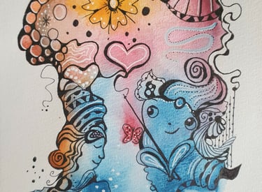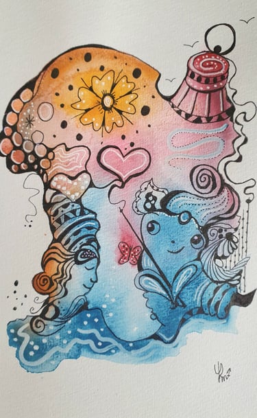 Au delà du dessin intuitif, ma créativité peut aussi être au service d'une histoire. Mes contes peuvent naître d'un dessin, un personnage peut avoir toute une histoire à raconter. Retrouvez les contes sur ma chaîne Youtube, pour un voyage visuel et auditif.